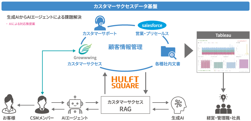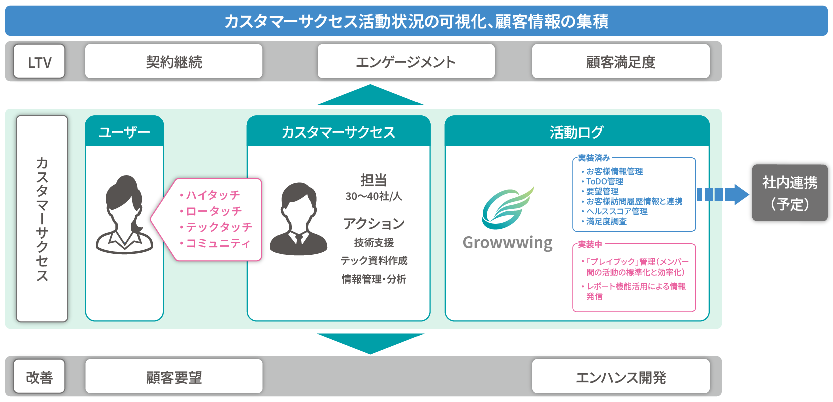 - 顧客情報を集約し、顧客の状態と次アクションを一元管理できる基盤として「Growwwing」を採用