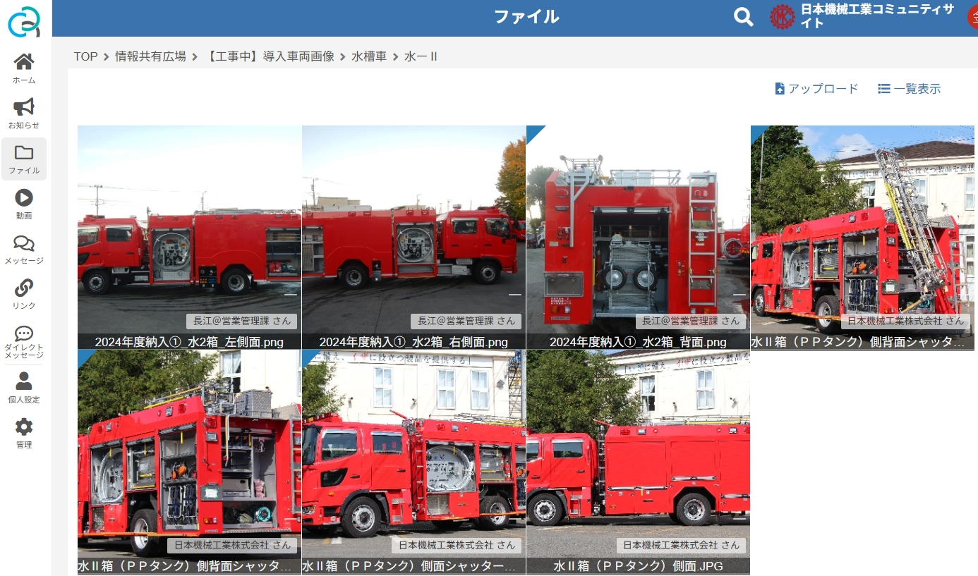 導入当初は、社内の営業部門を中心に使い始め、現在は代理店と情報共有基盤として「CommuRing」が稼働しており、代理店を含めて約100社のユーザーの情報共有基盤として拡大を続けています。共有している情報には、複数種類の車種に関する納入実績情報とともに、各車両の図面などの画像情報、同社が発行する会報誌、そして消防ポンプの動きの紹介や装備品の巻き取り方法、パーツの締め上げ方といったメンテナンス関連の各種動画が共有されています。「外観図をはじめ、セールススクリプトや図面、カタログなど販促活動に関する資料を拡充していき、代理店の販促活動に役立ててもらえるような環境づくりをさらに進めていく計画です」と金築氏は語ります。