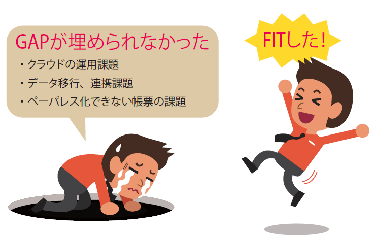 - ユーザ部門のこれまでの要件と汎用パッケージでできることとの差異(GAP)を埋められなかった