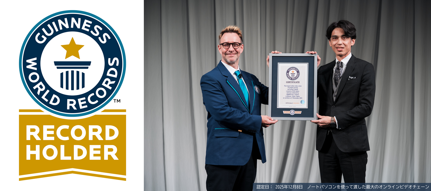 総勢292名による本取り組みは「ノートパソコンを使って渡した最大のオンラインビデオチェーン」として、2025年12月8日にギネス世界記録™に公式認定されました。