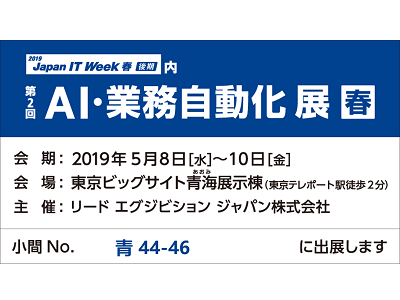 株式会社ユニリタでは、2019年5月8日(水)~10日(金)までの期間に、東京ビッグサイト青海展示棟で開催されます第28回 Japan IT Week【春】後期において、「AI・業務自動化展」 に出展いたします。